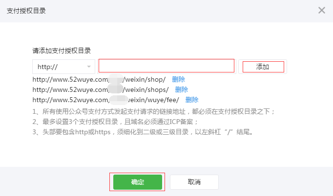 3、支付授权目录的设置