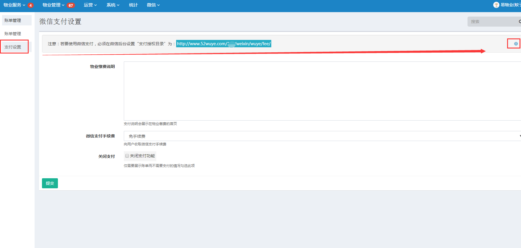 “支付设置”页面点击右上角“蓝色感叹号”