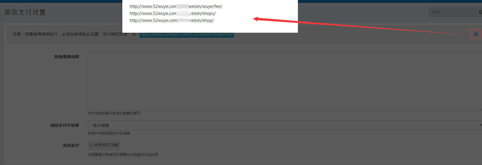 再去微信后台设置“支付授权目录”,右下角“感叹号”点开有3个(其中有1个是下方写的)一共需要设置3个